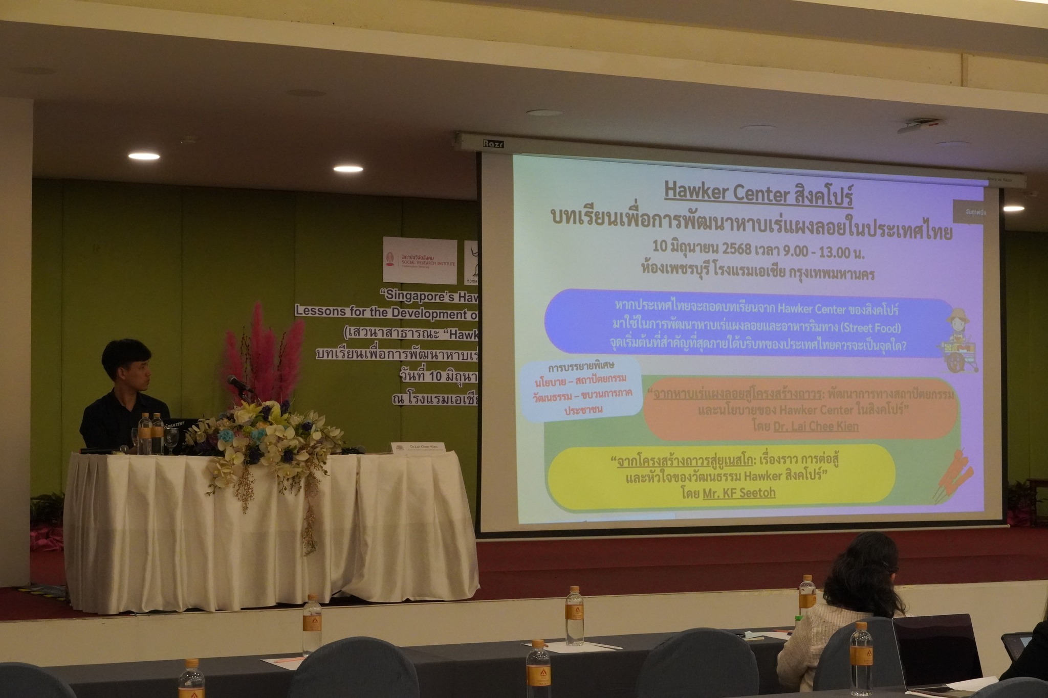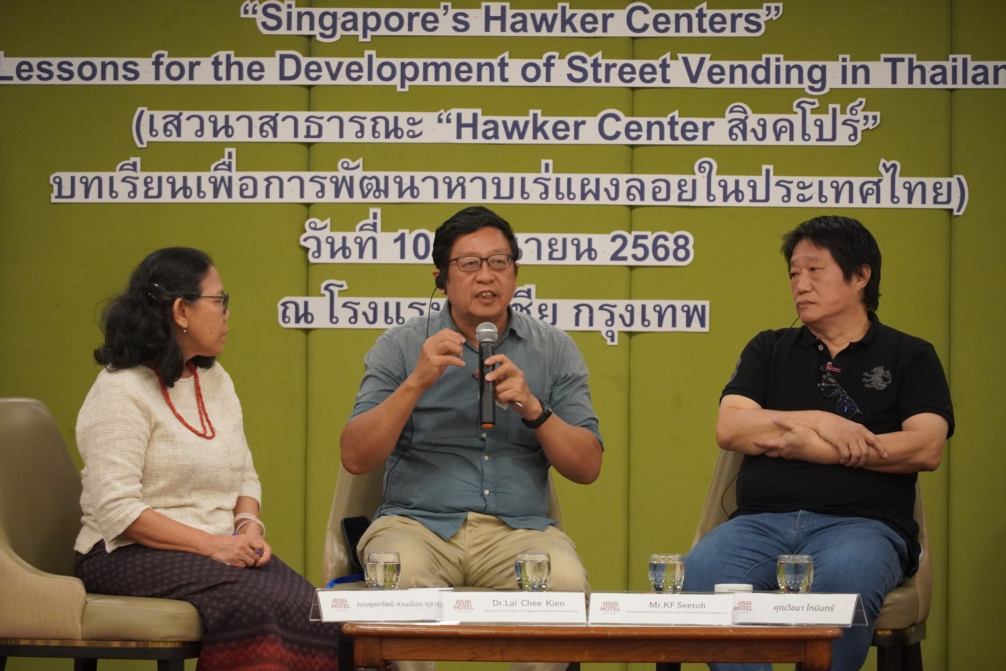 เมื่อวันที่ 10 มิถุนายน 2568 ได้ทำการจัดงานเสวนาสาธารณะหัวข้อ “Hawker Center สิงคโปร์: บทเรียนเพื่อการพัฒนาหาบเร่แผงลอยในประเทศไทย” ที่โรงแรมเอเชีย กรุงเทพฯ