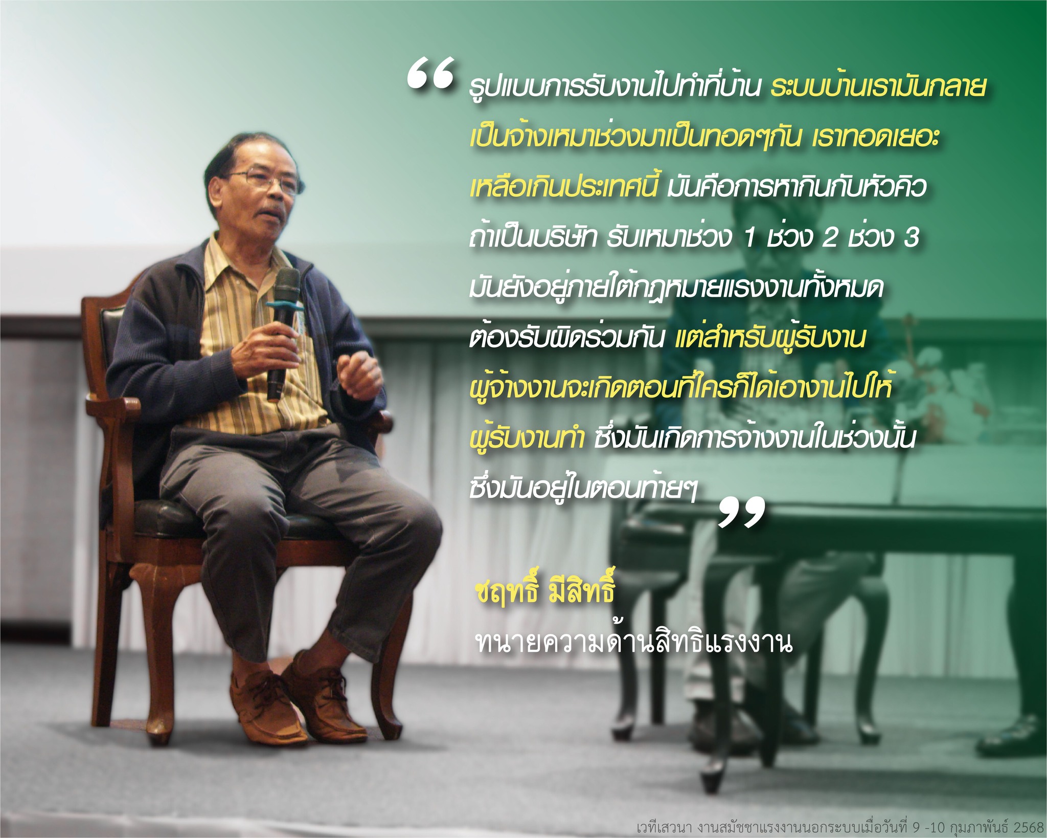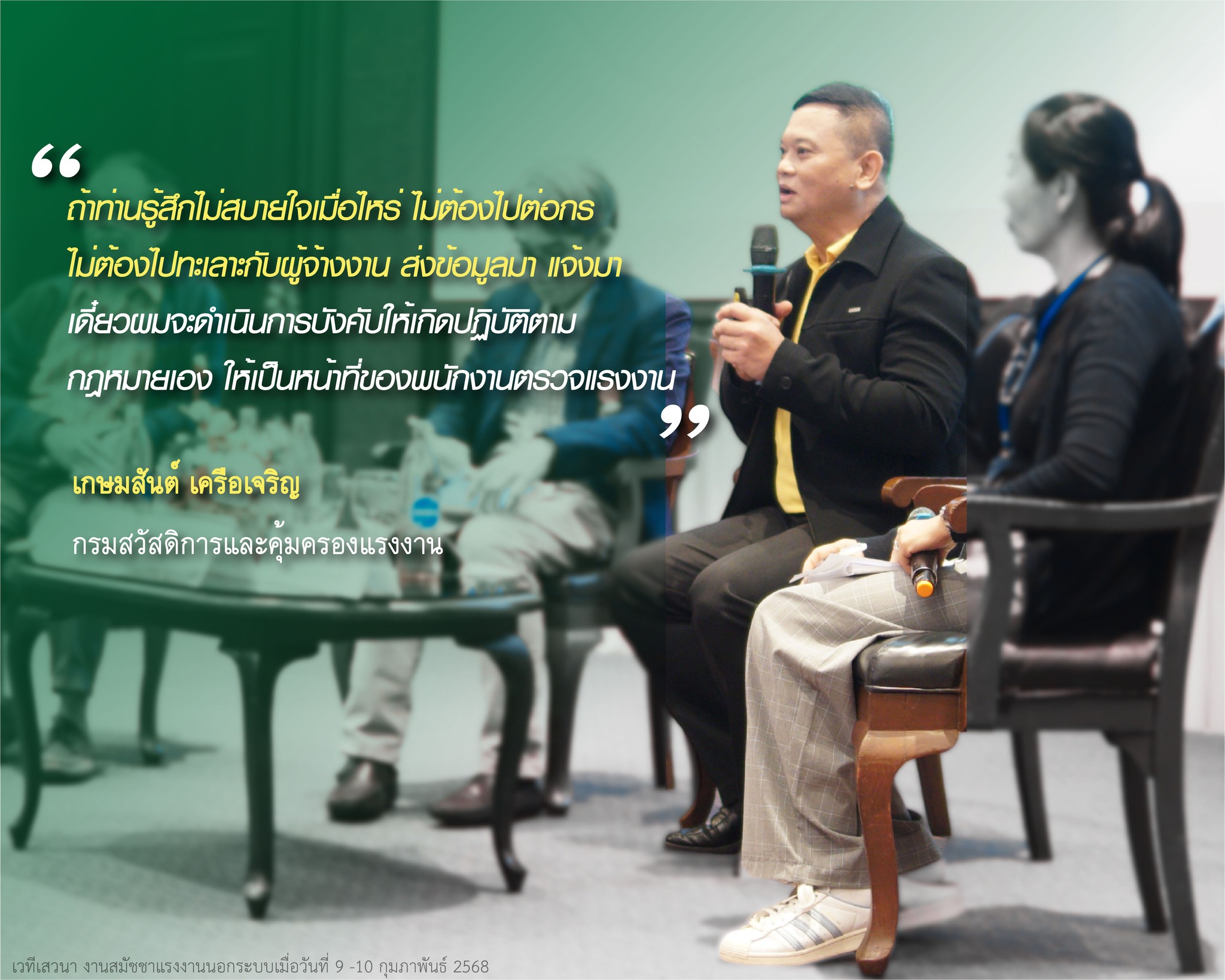 นับเป็นครั้งแรกที่สมาพันธ์แรงงานนอกระบบ (ประเทศไทย) สามารถเชิญรัฐมนตรีว่าการกระทรวงแรงงานมาร่วมเวทีเสวนาและรับฟังความคิดเห็นของแรงงานนอกระบบได้ ในงานที่จัดขึ้นโดยสมาพันธ์แรงงานนอกระบบ (ประเทศไทย) จัดงานร่วมกับ สถาบันวิจัยสังคม จุฬาฯ HomeNet Thailand และ สสส. ในวันที่ 9-10 กุมภาพันธ์ 2025 ภายในงานมีจำนวนผู้เข้าร่วมงานทั้งสิ้น 134 คน เป็นเพศชาย 43 คน เพศหญิง 91 คน มีกิจกรรมดังต่อไปนี้